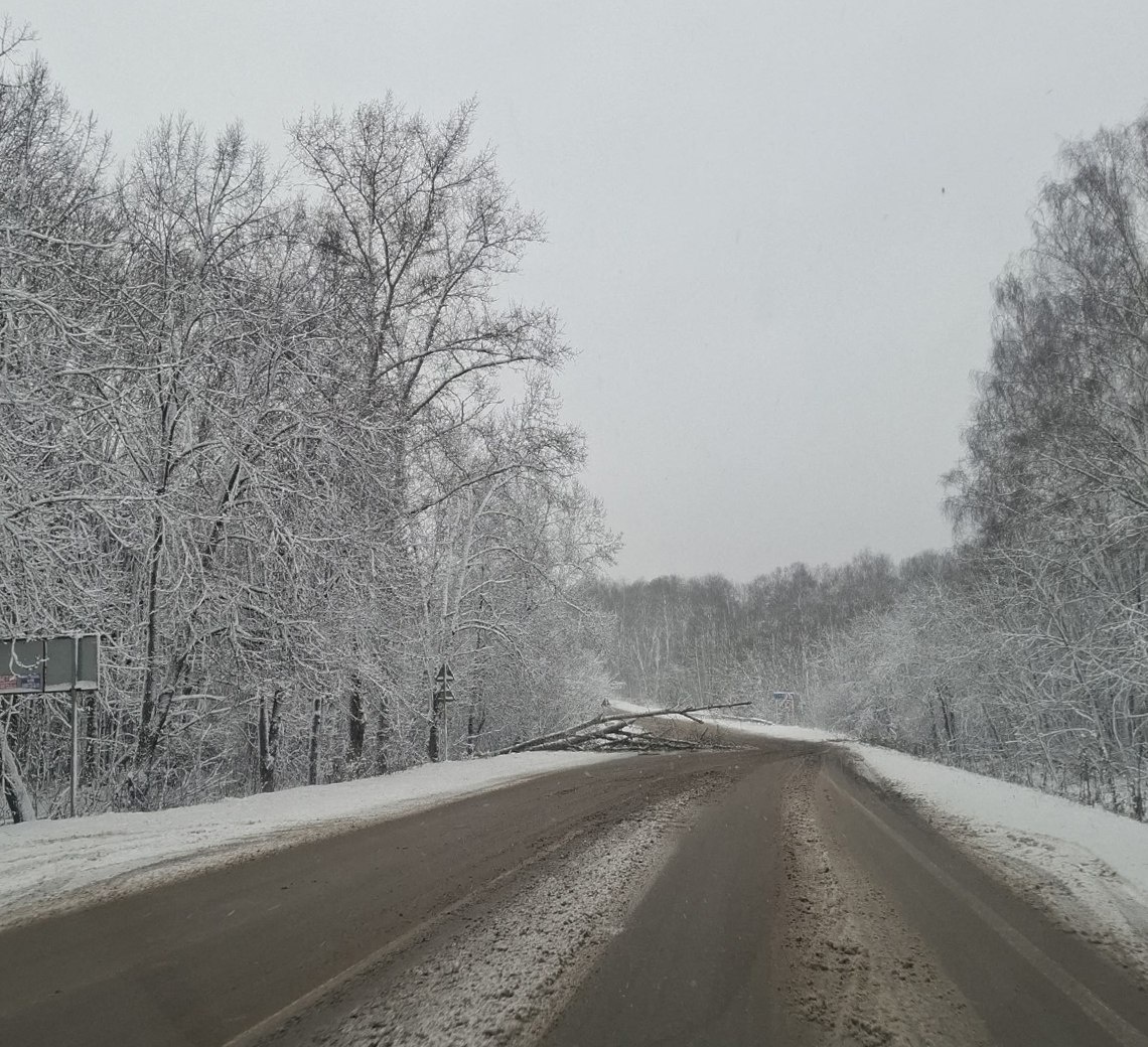 Первая жертва снегопада. За Спутником упало дерево. Проезжая часть (в сторону области) на половину перекрыта, остался узкий проезд. Будьте аккуратны.