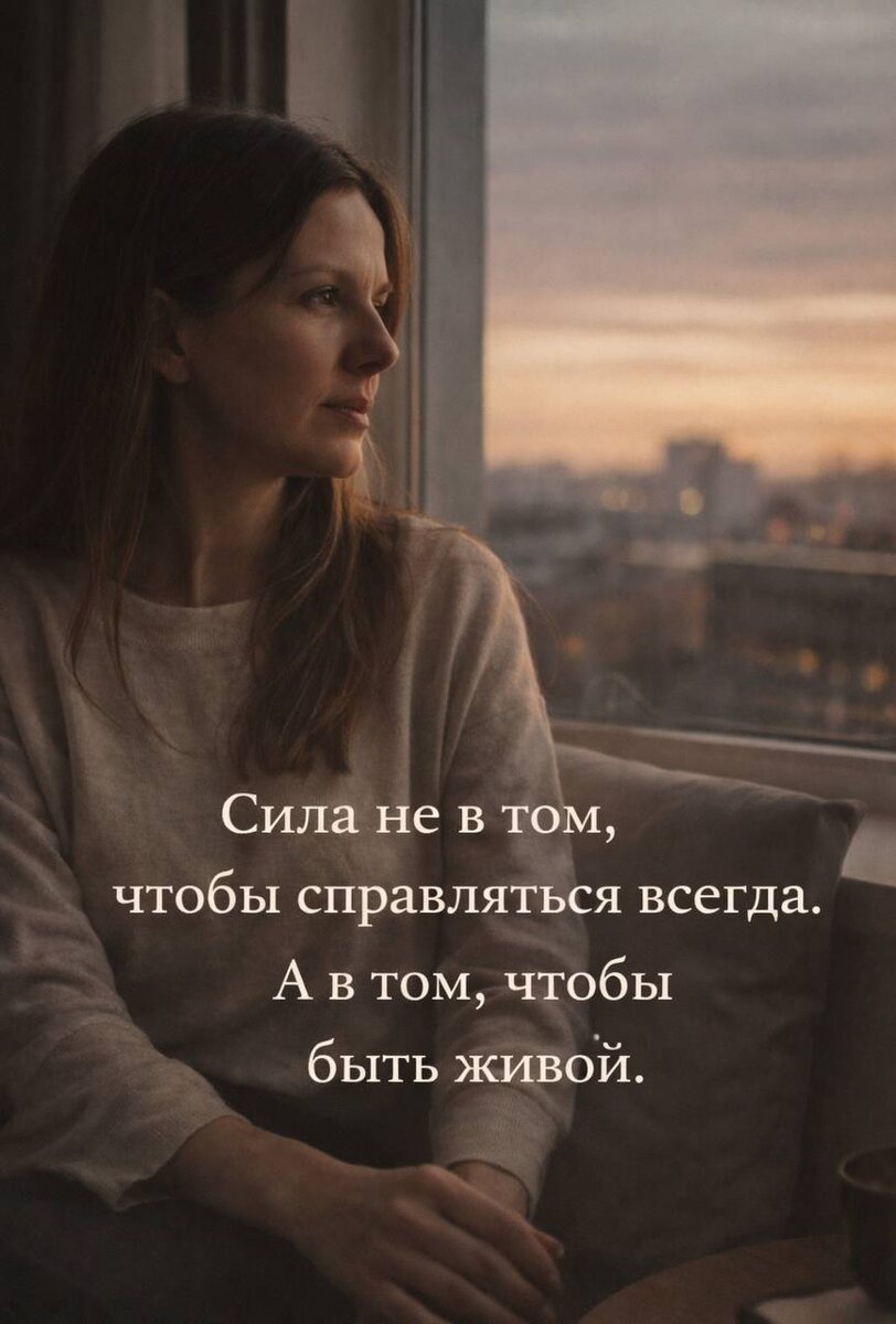 Я умею помогать людям. Но долго не умела просить Есть одна привычка, которую редко замечают у сильных людей. Они умеют поддерживать всех вокруг. Они умеют быть опорой. Они умеют выдерживать чужие эмоции, сложные решения, кризисы и неопределённость. Но когда опора нужна им самим — они молчат. Я была такой. Я легко слушала. Включалась. Точно чувствовала, где человеку больно, где он запутался, где ему страшно. Находила слова. Поддерживала. Помогала делать выбор. И при этом почти никогда не просила. Не потому что не нуждалась. А потому что внутри жило ощущение: «Я справлюсь сама». Со стороны это выглядит красиво. Как сила. Как зрелость. Как независимость. Но внутри это часто выглядит иначе. Как одиночество, замаскированное под самостоятельность. Я хорошо помню момент, когда впервые это осознала. Я сидела после очередного насыщенного дня — полного чужих историй, эмоций, запросов, решений. И вдруг поймала себя на простой, но очень честной мысли: «А если сейчас мне станет по-настоящему тяжел