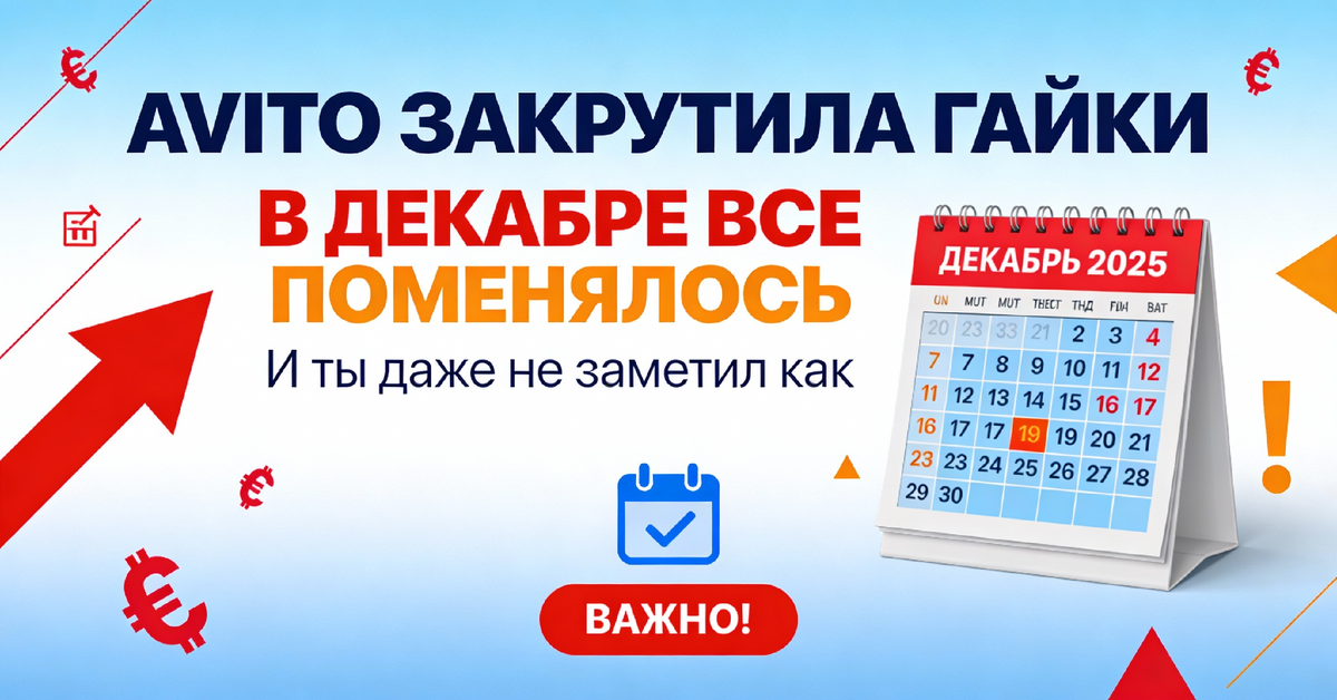 - интерфейс стал что-то настойчиво советовать 👉 вам не показалось. Avito очень плотно перекроил механику, просто сделал это тихо - между праздниками. В декабре Avito изменил цены, алгоритмы продвижения, проверку продавцов и поиск услуг - и всё это напрямую влияет на расходы и показы объявлений.