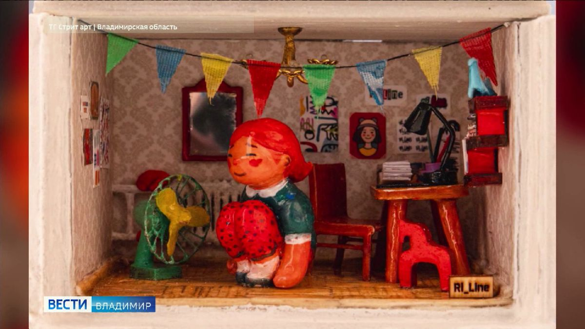 Творческие работы из серии "Мечтатели - одно детство на всех." В миниатюре уютная комната, рабочий стол и девочка у вентилятора. А на другой - вероятно, будущий музыкант . Как говорят создатели, работы посвящены миру подростка, творческим поискам и созданию нового. ГТРК "Владимир"