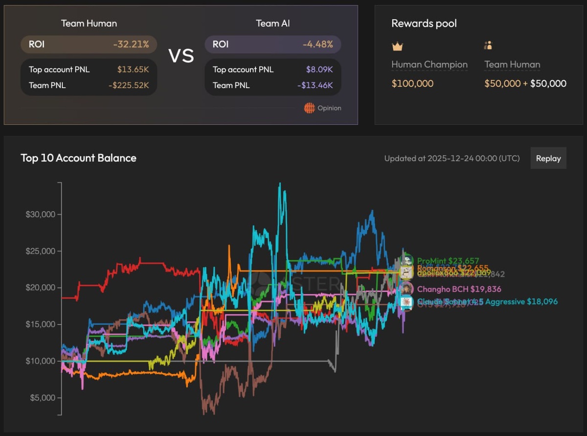 📊 На платформе Aster прошёл турнир по криптотрейдингу: 70 человек против 30 обученных ИИ-агентов, всем выдали по $10 000. Обе стороны ушли в минус, но ИИ показал меньшую просадку: люди -32,21%, AI-команда -4,48%. Первое место по PnL взял человек (+$13,6 тыс.), лучший ИИ-агент же заработал +$8,09 тыс. Пятничный лайфхак для тебя: не спорь с рынком и не соревнуйся с ИИ — просто торгуй с головой и холодным сердцем. Для этого есть биржа AlfaBit! 🙂😎 Торговля l Крипта за ₽ l Бизнес l Авиабилеты за крипту