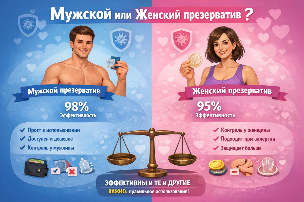 Вопрос «какой презерватив лучше» возникает не только из любопытства, но и из реальной заботы о безопасности, комфорте и контроле над ситуацией. Мужские презервативы известны всем, женские — реже встречаются и окружены мифами. Разберёмся без предвзятости. Что это: тонкий чехол (обычно из латекса, реже — полиуретан или полиизопрен) Плюсы Минусы Что это: эластичная трубка с кольцами (из нитрила или полиуретана). Плюсы Минусы С точки зрения защиты от беременности и ИППП оба средства сопоставимы, если используются правильно. Это индивидуально: Нет универсального «лучше».