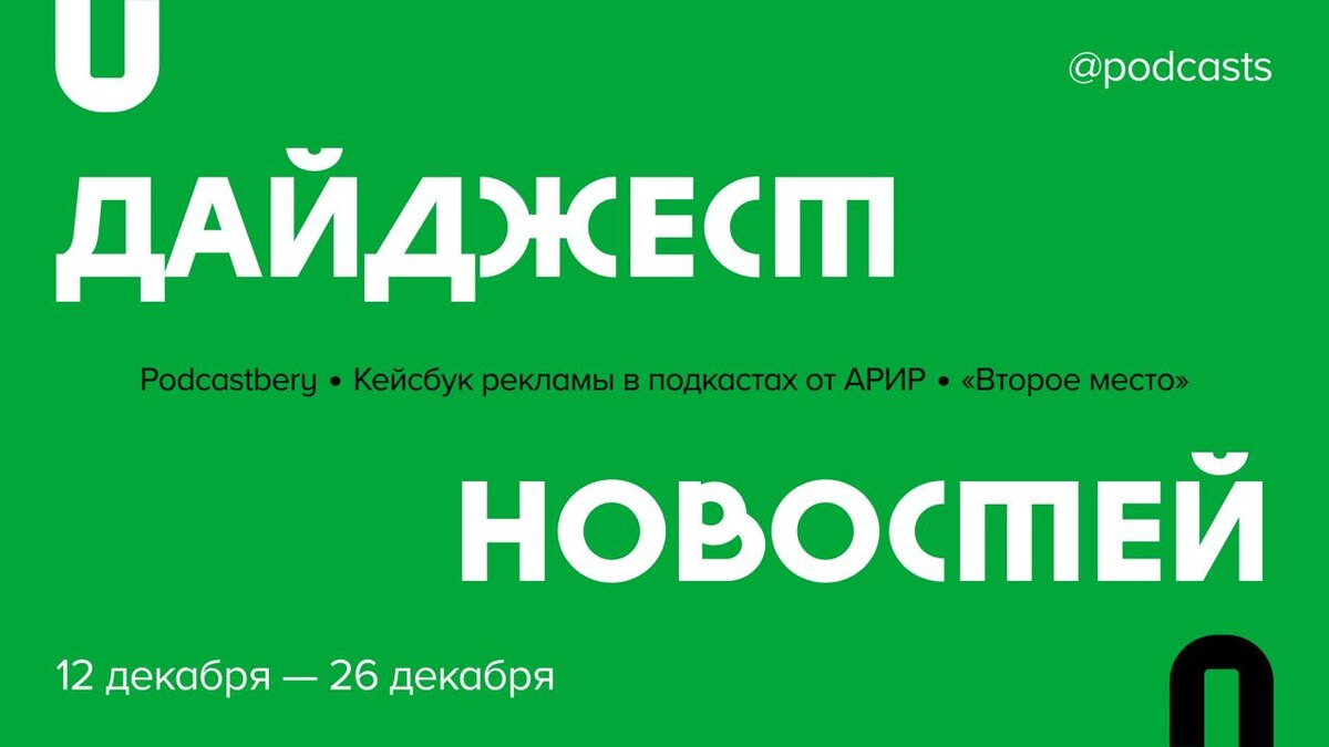 ? Рассказываем про сервис Podcastbery, закрытие подкаста «Второе место» и кейсбук рекламы в подкастах от АРИР. https://podcasts.ru/dajdzhest-novostej-12-dekabrya-26-dekabrya/