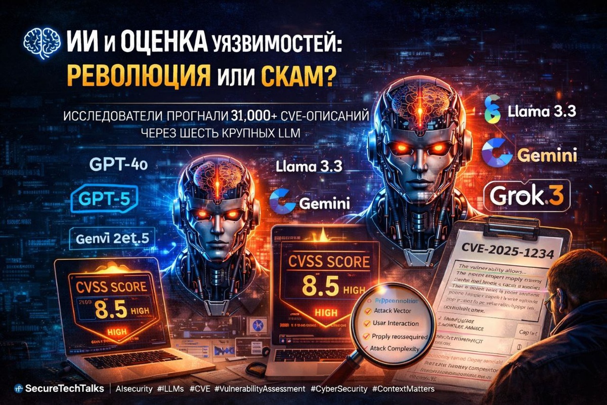 LLM: β’ GPT-4o β’ GPT-5 β’ Llama 3.3 β’ Gemini 2.5 Flash β’ DeepSeek R1 β’ Grok 3 βοΈΠΠΎΠ΄Π΅Π»ΠΈ ΠΎΡΠ΅Π½ΠΈΠ²Π°Π»ΠΈ ΠΈΡΠΊΠ»ΡΡΠΈΡΠ΅Π»ΡΠ½ΠΎ ΡΠ΅ΠΊΡΡ ΠΎΠΏΠΈΡΠ°Π½ΠΈΡ ΡΡΠ·Π²ΠΈΠΌΠΎΡΡΠΈ. ΠΠΌ Π½Π΅ Π΄Π°Π²Π°Π»ΠΈ: β Π½Π°Π·Π²Π°Π½ΠΈΡ ΠΏΡΠΎΠ΄ΡΠΊΡΠΎΠ², β Π²Π΅ΡΡΠΈΠΉ ΠΠ, β ΠΈΠ΄Π΅Π½ΡΠΈΡΠΈΠΊΠ°ΡΠΎΡΡ CVE, β Π΄Π°Π½Π½ΡΠ΅ ΠΏΠΎΡΡΠ°Π²ΡΠΈΠΊΠΎΠ² ΠΡΠΎ Π±ΡΠ»ΠΎ ΡΠ΄Π΅Π»Π°Π½ΠΎ ΡΠΏΠ΅ΡΠΈΠ°Π»ΡΠ½ΠΎ, ΡΡΠΎΠ±Ρ ΠΈΡΠΊΠ»ΡΡΠΈΡΡ Β«ΠΏΠΎΠΈΡΠΊ ΠΏΠΎ ΡΠ°Π±Π»ΠΎΠ½ΡΒ» ΠΈ Π·Π°ΡΡΠ°Π²ΠΈΡΡ ΠΠ Π»ΠΎΠ³ΠΈΡΠ΅ΡΠΊΠΈ ΡΠ°ΡΡΡΠΆΠ΄Π°ΡΡ Π½Π° ΠΎΡΠ½ΠΎΠ²Π΅ ΡΠ΅ΠΊΡΡΠ°. Π’ΠΎ Π΅ΡΡΡ Π·Π°Π΄Π°ΡΠ° Π±ΡΠ»Π° Π½Π΅ ΠΏΡΠΎΡΡΠΎ ΠΏΡΠΎΡΠΈΡΠ°ΡΡ ΠΎΠΏΠΈΡΠ°Π½ΠΈΠ΅, Π° Π²ΠΎΡΡΠΎΠ·Π΄Π°ΡΡ ΠΊΠ»ΡΡΠ΅Π²ΡΠ΅ ΠΌΠ΅ΡΡΠΈΠΊΠΈ CVSS, ΠΊΠΎΡΠΎΡΡΠ΅ ΠΎΠΏΡΠ΅Π΄Π΅Π»ΡΡΡ ΠΏΡΠΈΠΎΡΠΈΡΠ΅Ρ ΡΠ΅Π°Π³ΠΈΡΠΎΠ²Π°Π½ΠΈΡ Π½Π° ΡΡΠ·Π²ΠΈΠΌΠΎΡΡΡ. π§© ΠΠ΄Π΅ ΠΠ ΡΡΡΠ΅ΠΊΡΠΈΠ²Π΅Π½? ΠΠΎΠ΄Π΅Π»ΠΈ ΠΏΠΎΠΊΠ°Π·Π°Π»ΠΈ Π»ΡΡΡΠΈΠ΅ ΡΠ΅Π·ΡΠ»ΡΡΠ°ΡΡ ΡΠ°ΠΌ, Π³Π΄Π΅ ΡΠ·ΡΠΊ ΠΎΠΏΠΈΡΠ°Π½ΠΈΡ Π±ΡΠ» ΠΏΡΡΠΌΠΎΠ»ΠΈΠ½Π΅ΠΉΠ½ΡΠΌ ΠΈ ΡΠΎΠ΄Π΅ΡΠΆΠ°Π» ΡΠ²Π½ΡΠ΅ ΡΠΈΠ³Π½Π°Π»Ρ: πΉ Attack Vector (Π½Π°Ρ