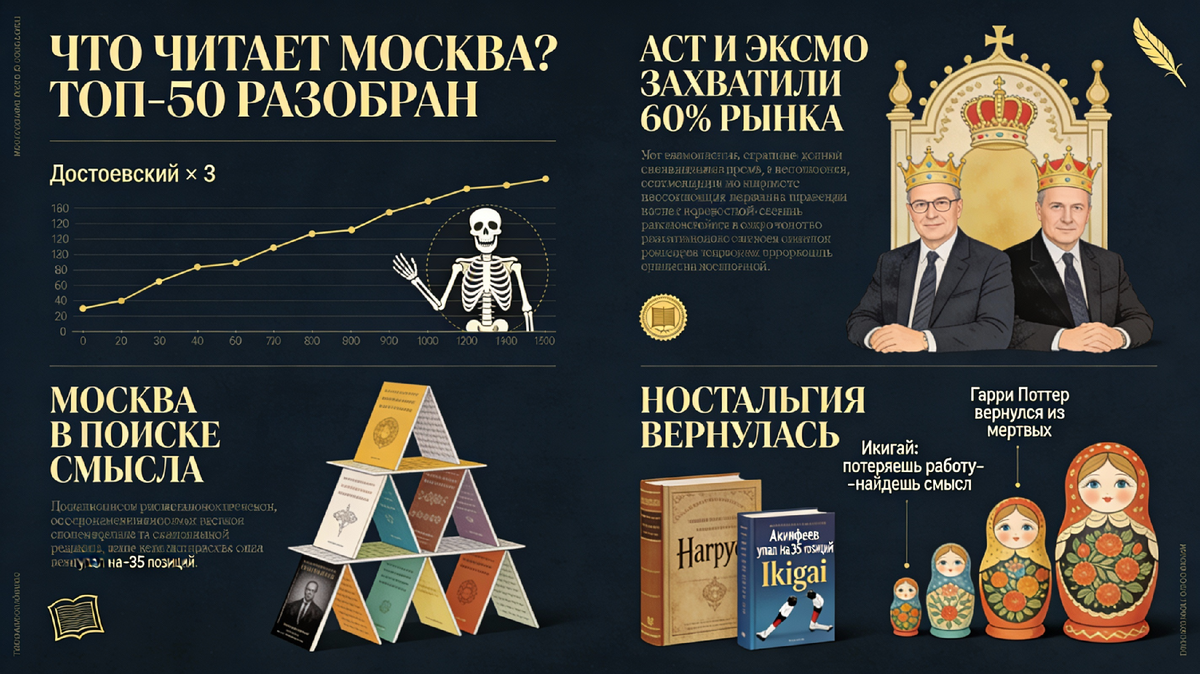 Итог: Это не список того, что москвичи хотят читать. Это портрет того, чего они хотят от жизни: смысла, развития и уверенности, что с ними всё будет хорошо.