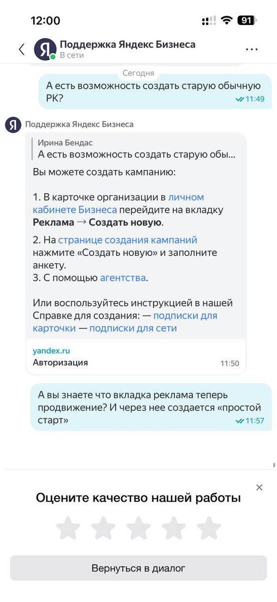 Бизнеса. на тему последних обновлений. У меня возникли вопросы по созданию рекламных кампаний. Я задала простой и логичный вопрос: 👉 есть ли сейчас возможность создать старую, обычную рекламную кампанию, а не то, во что превратили интерфейс после обновлений. В ответ получила… 📄 стандартную инструкцию «как создать рекламную кампанию». Ту самую, которую я знаю наизусть за годы работы в ЯБ. Я уточняю дальше: — а вы в курсе, что вкладка «Реклама» теперь называется «Продвижение» — и что через неё создаётся «Простой старт»? И что происходит дальше? 🟡 Чат просто закрывают. 🟡 Мне предлагают оценить качество помощи. Занавес… И вот здесь у меня, как у эксперта, возникает не злость — а усталость. Потому что: — изменения выкатываются массово, — интерфейс ломается, — показатели у клиентов проседают, — специалисты пытаются понять, как теперь с этим жить, — а поддержка отвечает по шаблону и выходит из диалога. Самый тревожный момент во всей этой истории даже не в кривых обновлениях. А в то