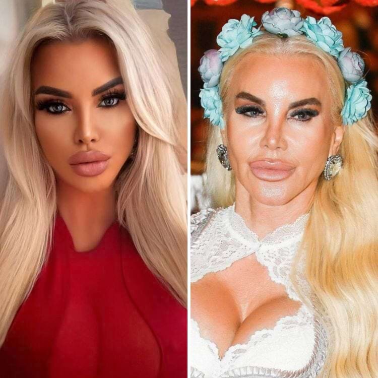 В сети все помешались на фотошопе. Смотрите, что из этого вышло. Над некоторыми фото вы будете долго смеяться. Современная версия феи-крестной звучит примерно так: "Хотите быть красивой? Просто нажмите пару кнопок!" Сегодня каждая женщина — художник своего лица, вооруженная не кисточкой и палитрой, а мощью фотошопа и фильтров. Вместо долгих походов к косметологу и хирургу достаточно загрузить снимок в программу и буквально стереть годы и убрать лишние килограммы цифровыми шпателями. Только обманываются простые люди, наивно полагающие, что это реальность. И вдобавок зарабатывающие кучу комплексов, из-за не идеальной внешности. Мы подготовили подборку “обманщиц”, на которых точно не стоит равняться. Фразу “я хочу быть подругой для своей дочери” дама на фото справа, наверное, поняла буквально, и недолго раздумывая, просто взмахом программной кисточки сделала себя ровесницей дочери. Надеемся, что ее шаг был во благо, а не с целью переманить поклонников дочурки. Именно так могла бы сказа