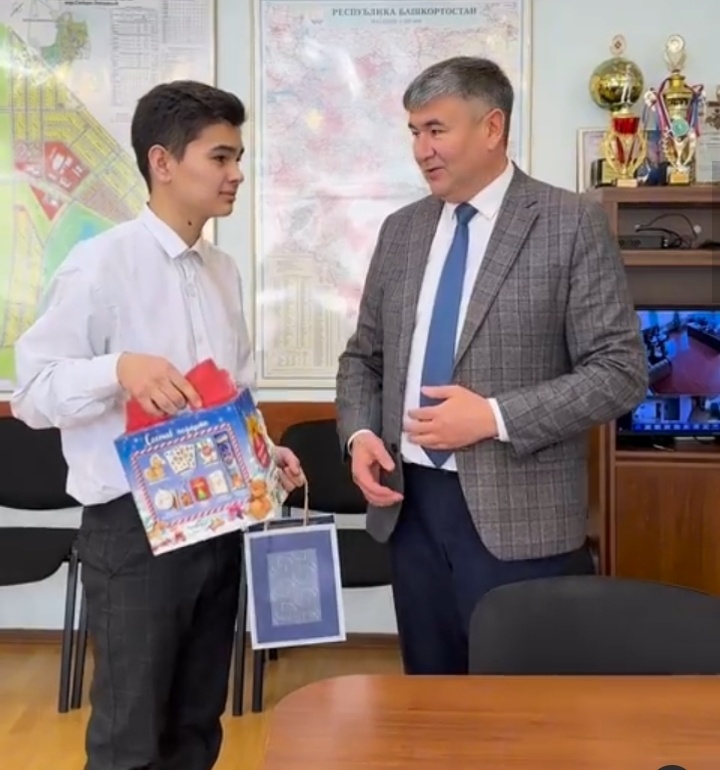 Эту информацию он разместил в своих социальных сетях. «Мне выпала честь исполнить новогоднее желание Тимура Галина из села 2-е Иткулово. Он сейчас студент первого курса Зауральского агропромышленного колледжа, где изучает изготовление художественных изделий из дерева. Я пригласил его в свой рабочий кабинет, где мы приятно побеседовали. Он рассказал о своих увлечениях и целях», — написал Азамат Идрисов. Руководитель муниципалитета также отметил, что Тимур — талантливый юноша, который не только хорошо поёт, но и создаёт удивительные поделки из дерева. Он увлекается волейболом, проявляет усердие и трудолюбие, оставаясь при этом скромным. Поэтому Азамат Идрисов предложил ему присоединиться к молодёжной администрации, чтобы Тимур мог раскрыть свои таланты и способности вместе с другими активными ребятами. На прощание Тимур получил от главы района подарок, который он загадал — музыкальную колонку. «Желаю Тимуру удачи в учёбе и новых побед! Пусть он продолжает участвовать в различных конкурса