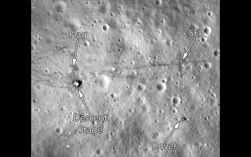 На ней указано расположение лунного модуля, флага около него, ровера далеко в стороне и SEP. Процитирую фрагмент комментария читателя: