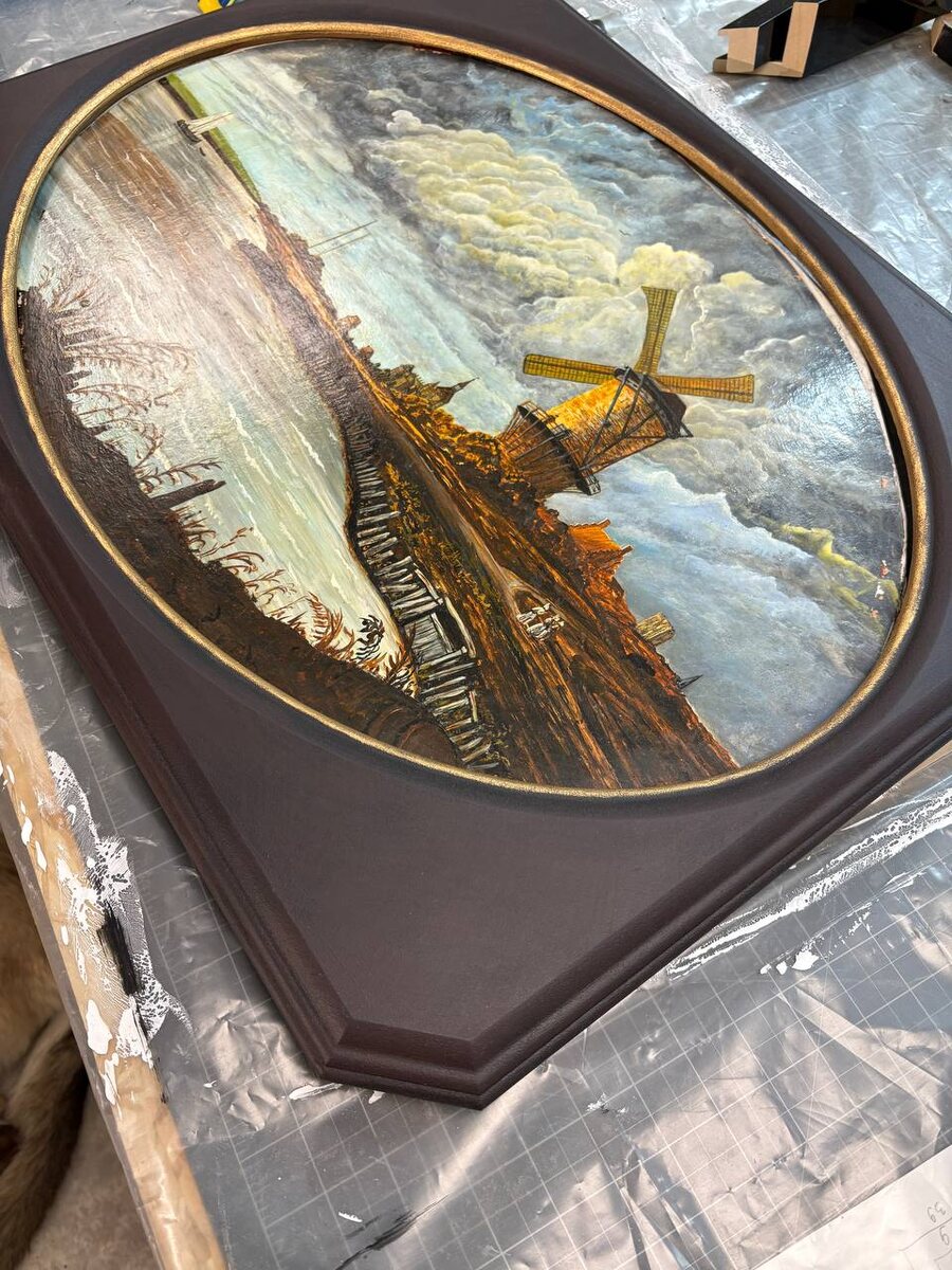 У клиента был запрос на раму овальной формы.Они могут быть из дуба,сосны и МДФ.Выбрав форму и материал мы преступили к обсуждению цвета рамы!Мой любимый этап.Рама должна быть темной,коричневой.Посмотрите этапы создания рамы.