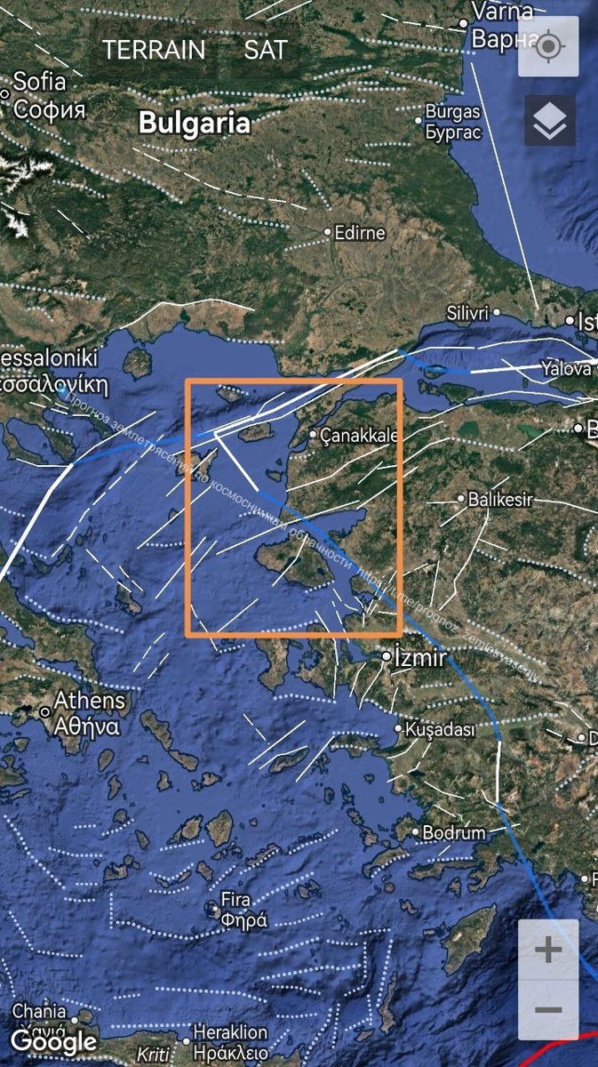В течение 7 дней может тряхнуть (до М5+) северо-запад Турции или Эгейское море, где трассировался угол Анатолийской плиты.