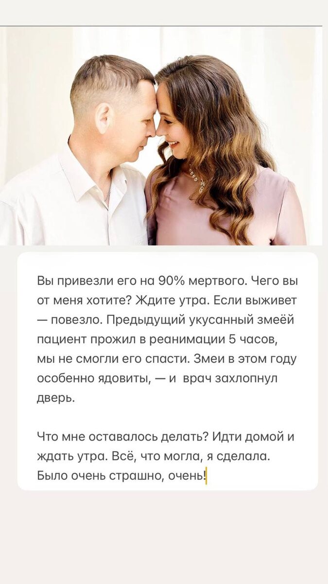 Чего вы от меня хотите? Ждите утра. Если выживет — повезло. Предыдущий укусанный змеёй пациент прожил в реанимации 5 часов, мы не смогли его спасти. Змеи в этом году особенно ядовиты, — и врач захлопнул дверь. Что мне оставалось делать? Идти домой и ждать утра. Всё, что могла, я сделала. Было очень страшно, очень! Так закончился день 23 августа 2025 года — моего мужа Константина укусила ядовитая змея 🐍 у нас на острове Русском. Классный, тёплый августовский день на море — был шикарный. К нам приехали в гости моя любимая одноклассница Танюшка с мужем и сыном, а также ещё одна одноклассница Юля из Владивостока. Хоть мы и живём в одном городе, последний раз виделись в 2019 году на вечере встречи выпускников. В общем, мы загорали, купались, ели вкусняшки. Наступил вечер. Костя пошёл заводить генератор, вернулся и стал под фонариком рассматривать свою ногу, так как ему показалось, что кто-то в темноте коснулся его ноги. Он увидел укус и предположили, что это змея. Буквально за две неде