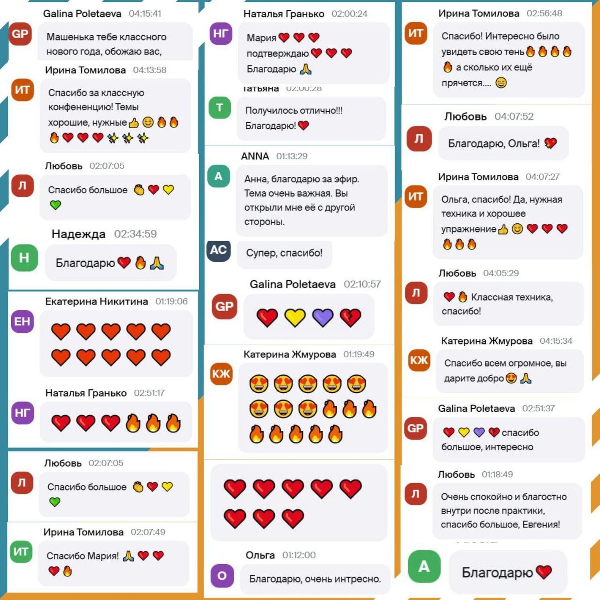 ❣️ Наша конференция получилась по-взрослому продуктивной 💣 🔥 С благодарностью и огоньками нас провожали зрители. 🥰 Отзывы на картинке 🎦 Смотреть можно на любой площадке, где вам удобнее: 👉 https://t.me/myt_notifications_bot?start=id231225 👍 А также мы очень топим за то, чтобы каждый зритель нашёл своего спикера! 🌈 Попробуйте все вкусняшки-подарки от каждого спикера: Здесь: ⚜️ и техники ⚜️ и бесплатные консультации ⚜️ и курсы практической психологии ⚜️ и методички ⚜️ и чек-листы ❣️ Спикеры старались быть полезными. Поэтому ждут, что подпишитесь на тех, кто понравился. 👉 https://t.me/myt_notifications_bot?start=id231225 🤩 Наслаждаемся вместе с Вами, друзья! Ждём встречи через подарки! 👍 ------------ ⚠️ P. S. По всем вопросам можно обратиться в нашу службу заботы в Telegram: 👉 https://t.me/MUT_zabota