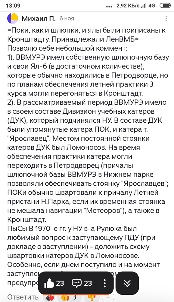 Михаил Пподробно подал и рассказал о плав(базе) средствах нашего училища, и я без купюр. Спасибо Вам. Ваши комментарии бесценны, ибо они показывают то, чего мы знать не могли.