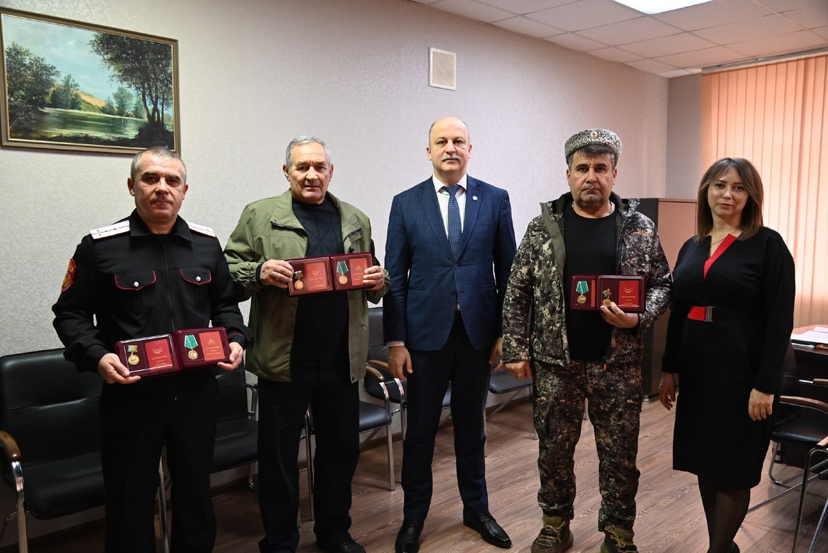 Сегодня глава Гиагинского района Андрей Таранухин вручил медали за помощь фронту и за сопровождение гуманитарного конвоя Гречка Владимиру, Гречка Виктору и Гавшину Владимиру.
