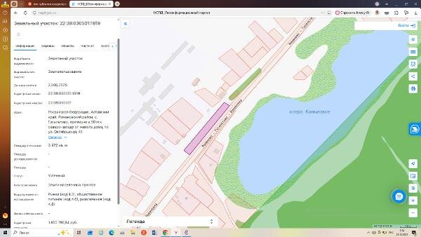 Название: Земельный участок из земель населенных пунктов с кадастровым номером 22:38:030501:1819, общей площадью 3972 кв.м., расположенный
