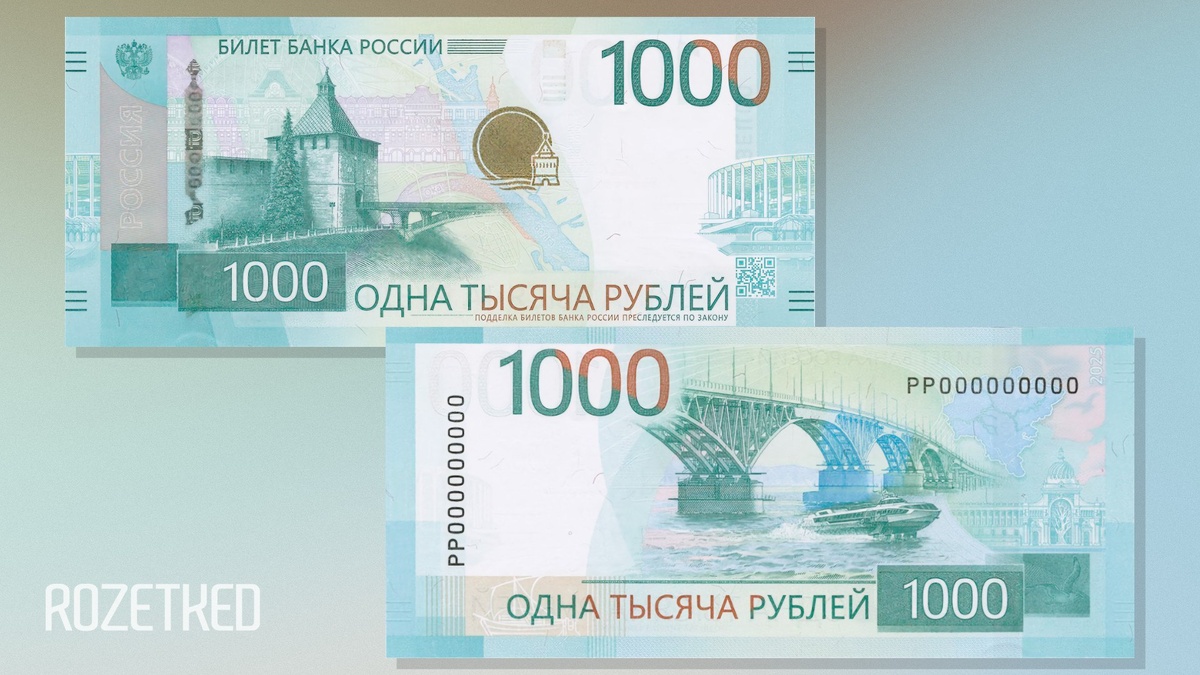 Центробанк представил купюру номиналом в тысячу рублей с современным дизайном. На лицевой части изображена Никольская башня Нижегородского кремля. Редизайн «тысячи» представили ещё в 2023 году, но новая банкнота попала в скандал из-за изображения храма без креста. rozetked.me/news/43546