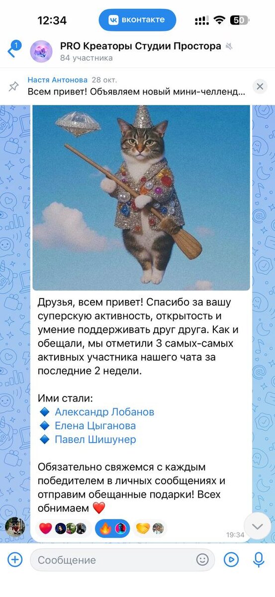 🎄 Выиграл в конкурсе среди Про креаторов VK, за активность 11 декабря. Но 23 декабря было объявлено что VK, закрывает все проекты Простор🤯 Теперь сижу жду обещанного приза, кураторы сказали что отправят…. Так что есть небольшая надежда на подарок🎁 к Новому году от VK.