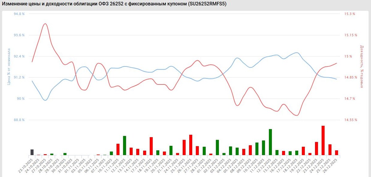- Процентный риск (риск роста ставок). Если ЦБ по какой-то причине резко повысит ставку, цена ОФЗ 26252 на вторичном рынке упадет. Для покупателя «до погашения» это не критично, но досрочная продажа будет убыточной.