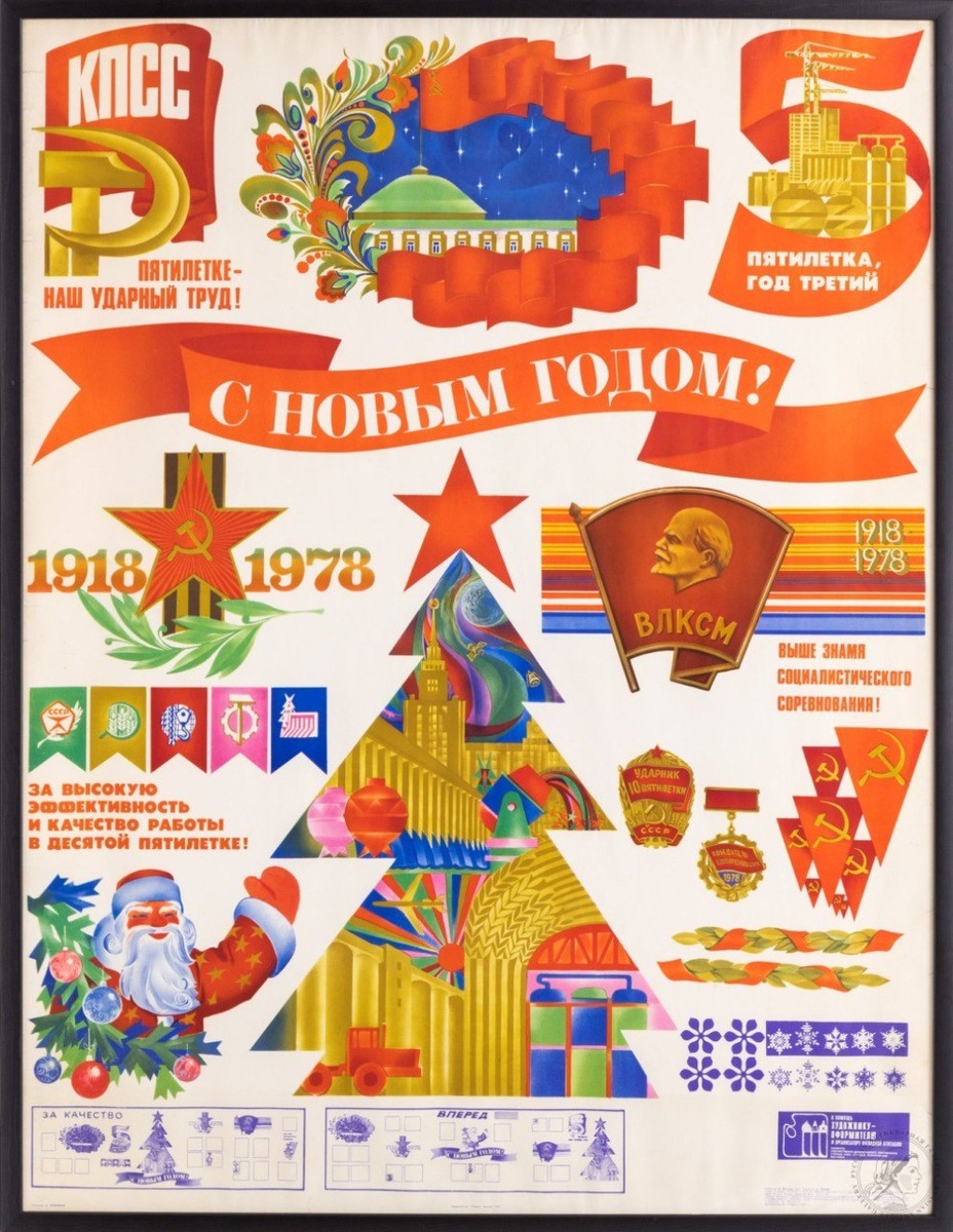 Сайт: rus-gal.ru #Любезнов А. - #Плакат «С Новым годом! 1978 г.» СССР, 1977 год. Бумага, офсетная печать. 106 Х 80,5 см #Соцреализм #Агитационный_жанр #Агитплакат Подробнее: https://rus-gal.ru/works/plakat-s-novym-godom-1978-g-7546/