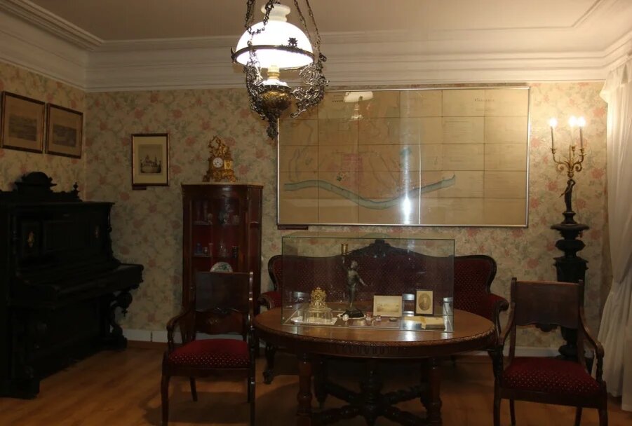 Интерьеры оформлены с исторической достоверностью: здесь - мебель XIX века, подлинные бытовые предметы, книги, музыкальные инструменты.