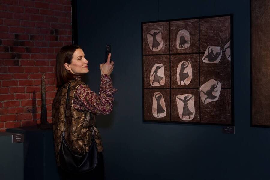 Каждая работа здесь действует не мгновенно, а постепенно. Она не кричит, а предлагает остановиться, присмотреться, подумать. Мы видим, как люди замирают перед холстами, и в этой паузе рождается мысль, возникает внутренний диалог.
