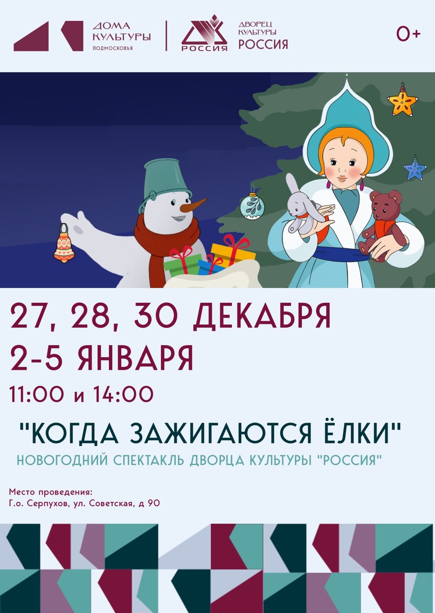 ✨ Новогодние приключения «Когда зажигаются ёлки» в ДК «Россия»! Сеансы в 11:00 и 14:00 📬 Помимо спектакля — фотозоны, ярмарка, почта Деда Мороза и море веселья! ❗дети до 4 лет — бесплатно (с одним взрослым). Для вас ❄️Увлекательная история о приключениях Деда Мороза и Снеговика. ❄️Весёлые игры и хороводы вокруг ёлки. ❄️Фото с Дедом Морозом и Снегурочкой. ❄️Интерактивное представление в Большом зале (45 минут). 🗓️27, 28, 30 декабря и 2–5 января. 🎟️БИЛЕТЫ В КАССЕ ДК 🚫 Возраст: 0+ 🏢 Дворец культуры «Россия» 📍 г. Серпухов, ул. Советская, д. 90 💰 Цена: 400 ₽ ⭐Поддержать канал голосом 💰 Канал Вакансии Серпухова ✅ Мероприятия Серпухов https://dzen.ru/id/66f01c6eb4c6fe60c9ca1608 http://vk.com/serpukhov_events http://dzen.ru/serpukhov_events