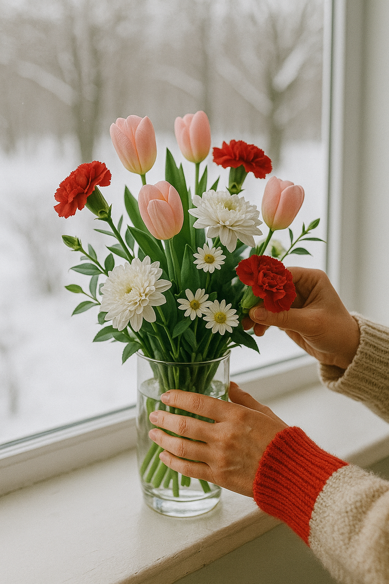 Уход за срезанными цветами зимой — это не магия и не набор случайных советов. Это понятная система: вы помогаете стеблям стабильно пить воду, убираете бактерии, поддерживаете комфортный микроклимат и защищаете букет от резких перепадов. Тогда сохранение цветов зимой становится управляемым процессом, а не лотереей. Ниже — подробная инструкция, как выстроить зимний уход за цветами так, чтобы букет радовал дольше.