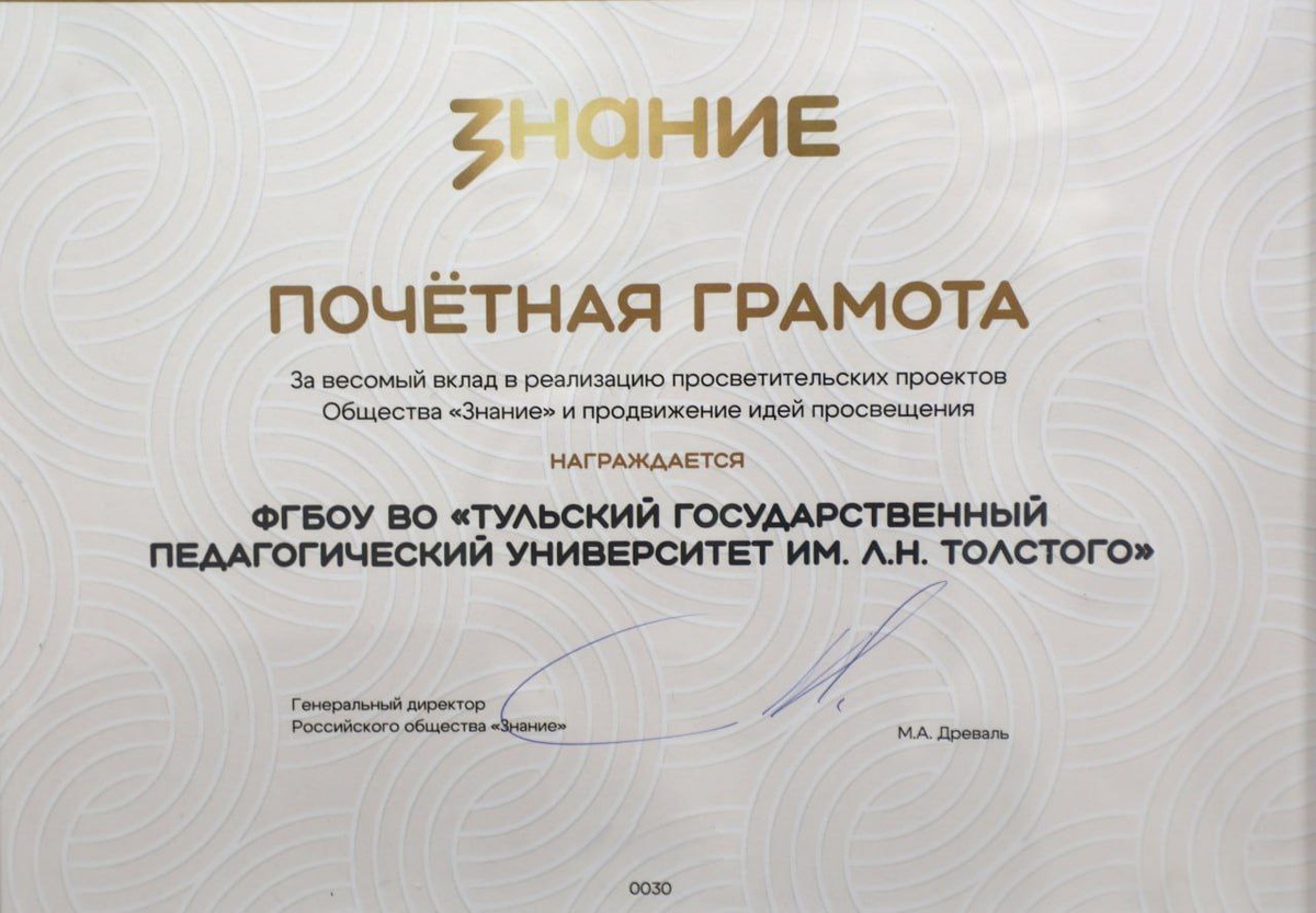 » 👏 Университет Льва Толстого награжден Почетной грамотой Российского общества «Знание»! Почетная грамота «За вклад в просвещение» вручается гражданам и организациям за весомый вклад в реализацию просветительских проектов общества и продвижение идей просвещения. #УниверситетЛьваТолстого 🍁 Толстовский в МАХ