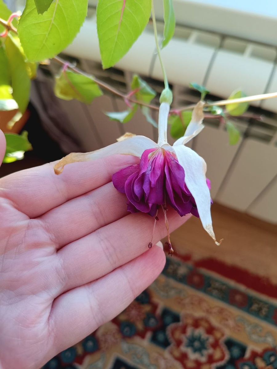 Но цвести не перестает. Надавала кучу бутонов, часть снимаем, чтобы растению было легче. И в зимнее время главное хорошее освещение для фуксии и не забывать про полив.