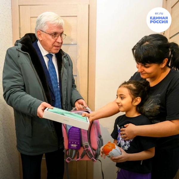 Девочка любит развивающие игры, а в этом году впервые сядет за школьную парту. Также депутат передала девочке школьный рюкзак и сладости.