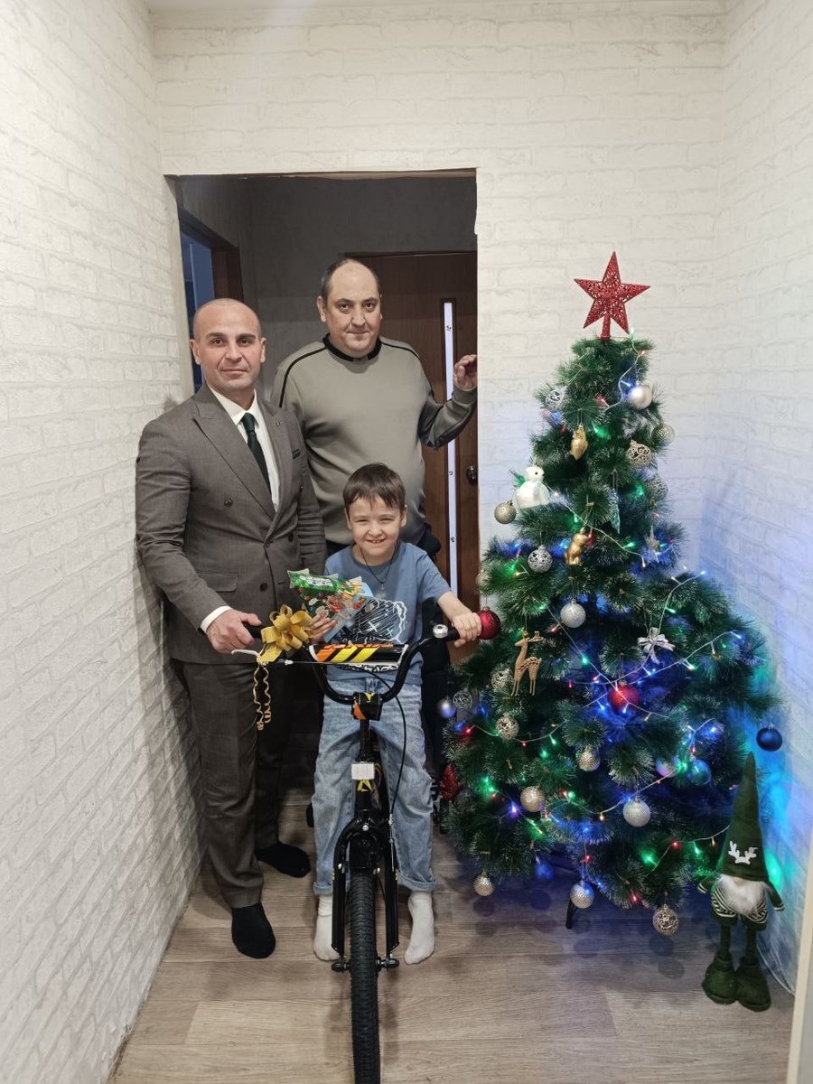 В преддверии Нового года руководитель управы Калининского административного округа Олег Савчук принял участие в ежегодной благотворительной акции «Ёлка желаний». В этом году он стал добрым волшебником для 7-летнего мальчика Марка, подарив ему новый велосипед и сладкий подарок от Деда Мороза. Всероссийская акция «Ёлка желаний» традиционно собирает письма детей, которые особенно ждут праздничного чуда. Выбрав одно из писем, руководитель управы лично вручил подарок Марку и поздравил его с наступающим Новым годом, пожелал крепкого здоровья, успехов в учебе, счастья и, конечно, чтобы в новом году исполнились все его мечты. «Ёлка желаний» – это возможность подарить ребенку веру в чудо и внимание. Видеть сияющие глаза детей – самая большая награда», – отметил руководитель управы Калининского округа Олег Савчук. Фото и информация управы Калининского административного округа