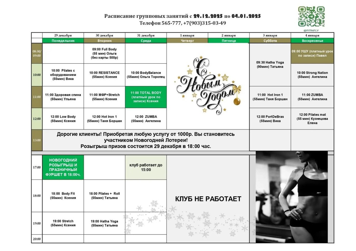 ⏩ Расписание групповых занятий с 29.12.25 по 04.01.26