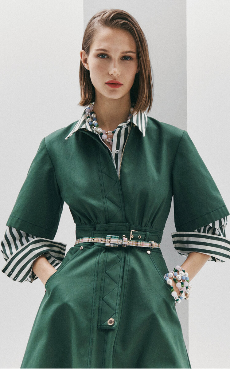 Увидела и просто влюбилась в весь образ! Хочу давно похожее платье, которое можно носить как самостоятельное изделие, а ещё и в паре с блузой, тем самым создавая актуальные многослойные комплекты. Увы, других фото пока нет, и я не тратила кучу времени для поиска, так как это новая коллекция и в новом году будет больше фото этого платья И вот тогда я смогу сделать более подробный разбор. Даже на сайте, где уже можно сделать предзаказ этого платья, нет подробных фото, как обычно. Только то, что я показала выше, и вот это:
