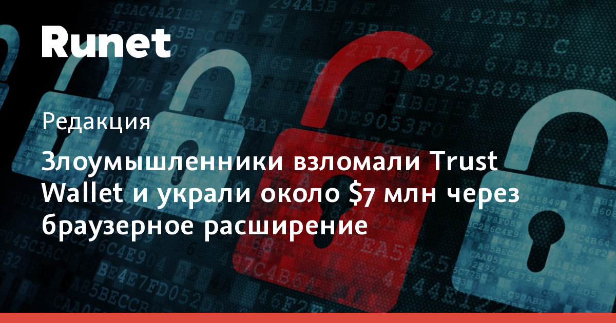 Злоумышленники взломали Trust Wallet и украли около $7 млн через браузерное расширение