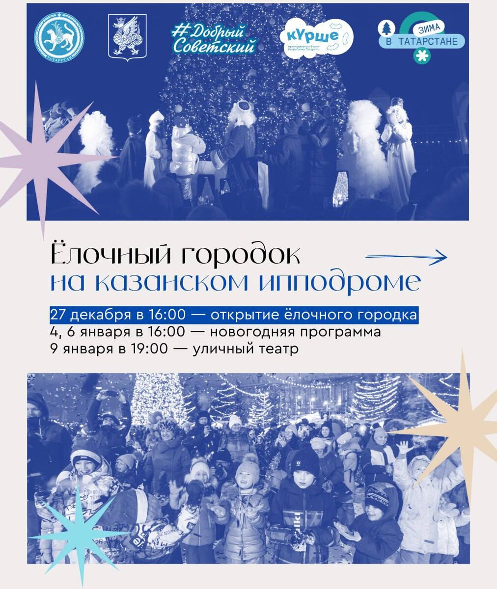 В этом году на ипподроме развернется большой ёлочный городок, наполненный новогодней ярмаркой, яркими фотозонами, большой ёлкой, зимним парком аттракционов и праздничной программой. 🎅🏻 На территории появится домик Деда Мороза с почтой. Здесь каждый сможет увидеть хозяина зимы и бесплатно отправить письмо с желаниями в Великий Устюг или своим родным и близким в другой город России. 👌🏼 Подробности в карточках Открытие 27 декабря 16:00 ✔️вход бесплатный 📍 Казанский ипподром 😹 Куда пойти с детьми в Казани @kidsafisha Больше информации в нашей группе, переходите