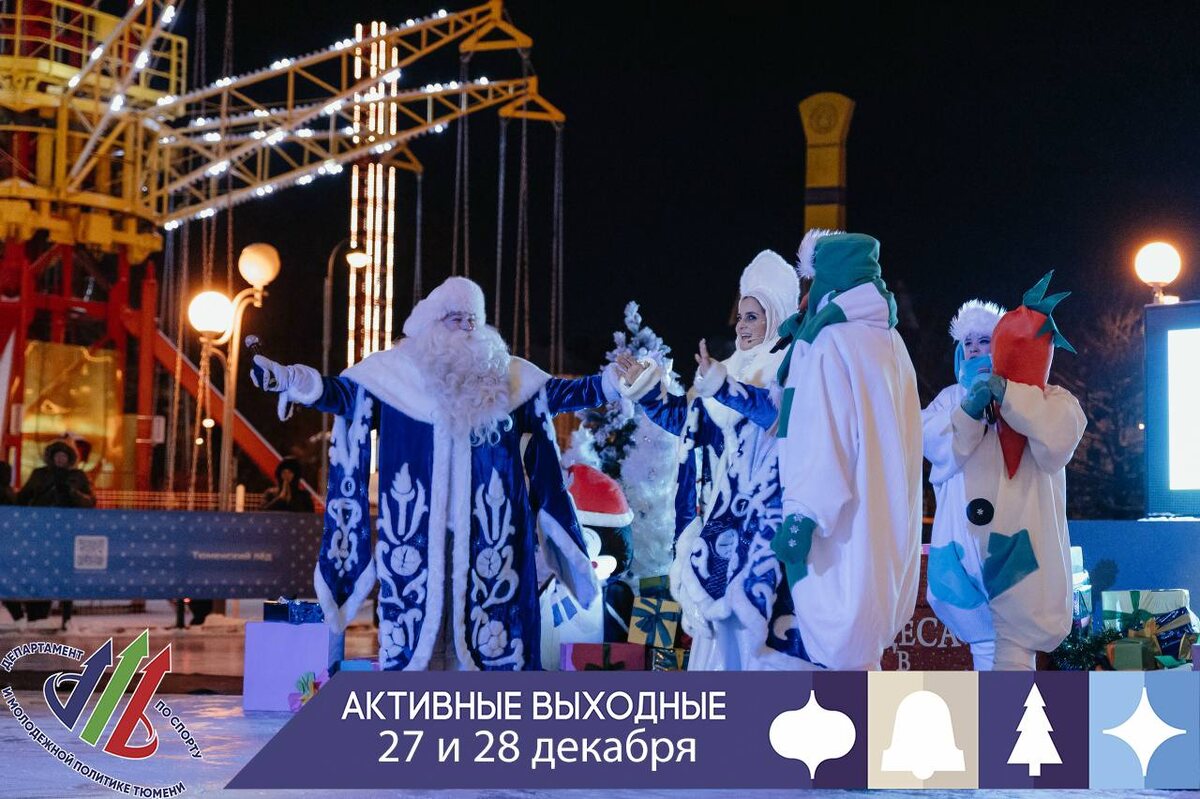 ! Проведите время активно и полезно! Городской департамент по спорту и молодежной политике подготовил для вас афишу мероприятий. ✅27 декабря в 19:00 Тюмень Каток у Конторы Пароходства распахнет свои двери для любителей активного образа жизни вместе со сказочными героями – Коньком-горбунком, Иванушкой и Жар-птицей. ✅27 декабря состоятся традиционные соревнования по сноуборду и горнолыжному спорту в рамках Спартакиады предприятий и организаций города Тюмени. Состязания развернутся на базе центра спорта и отдыха "Воронинские горки". Старт заездов в 12:10. ✅27 декабря областная столица станет местом притяжения любителей активного образа жизни. На базе спортивной школы "Тура" (ул. Кедровая, д. 125б) состоится чемпионат и первенство города Тюмени по брейкингу. Открытие и начало соревнований в 10:00. ✅27 декабря состоится последний день соревнований в рамках чемпионата и первенства города по плаванию. Местом состязаний станет спортивно-оздоровительный центр «Зодчий» (ул. Луначарского, 2