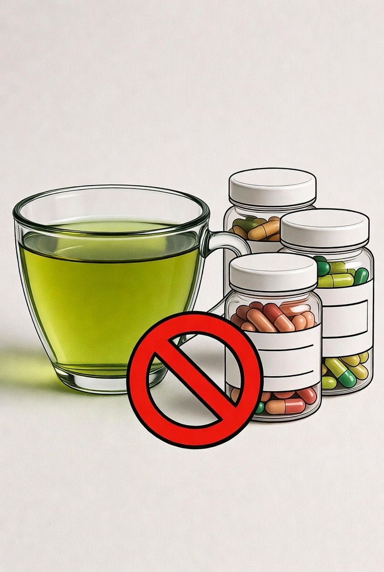 Зеленый чай — это кладезь антиоксидантов, но его полезные свойства могут обернуться против вас, если вы принимаете определенные добавки. Полифенолы и другие активные вещества напитка способны блокировать усвоение жизненно важных нутриентов или создавать риск нежелательных реакций. Разбираемся, с какими тремя категориями БАДов зеленый чай вступает в «конфликт интересов», сводя их эффективность к нулю.