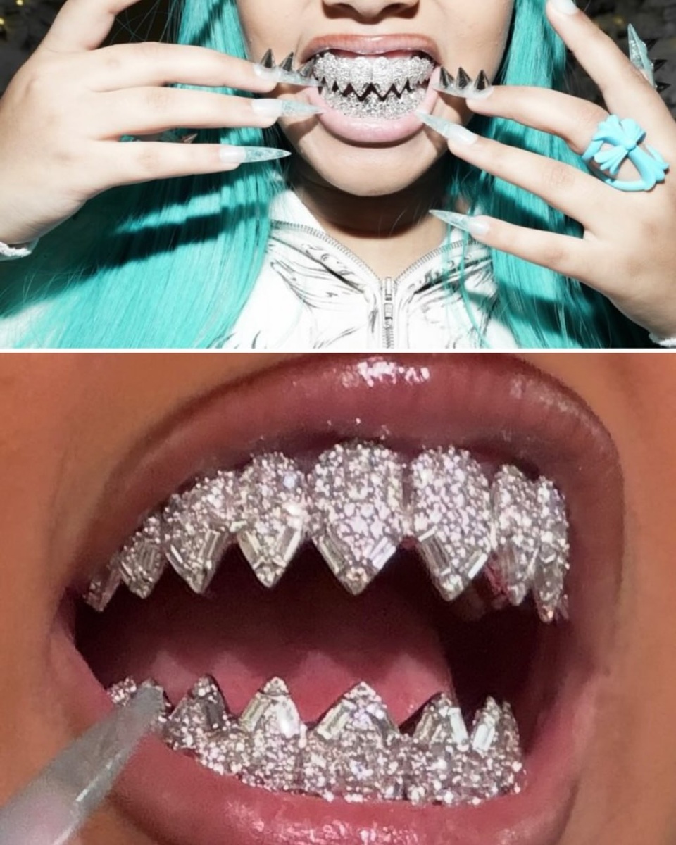 Дочь Ye показала бриллиантовые акульи грилзы от Johnny Dang