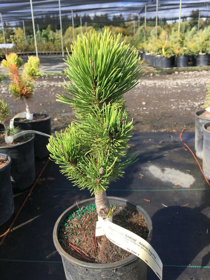 Сорт сосны Анджей, известный также как Andrzej, появился в результате селекции польского автора Анджея Шевчика в 1992 году. Эта разновидность принадлежит к группе горных сосен и характеризуется компактными размерами: высота взрослого дерева колеблется от 1 до 1.5 м, ширина — примерно 0.75 м. За первые десять лет своего развития сосна вырастает до указанных размеров, что идеально подходит для малых садовых участков и декоративных целей.