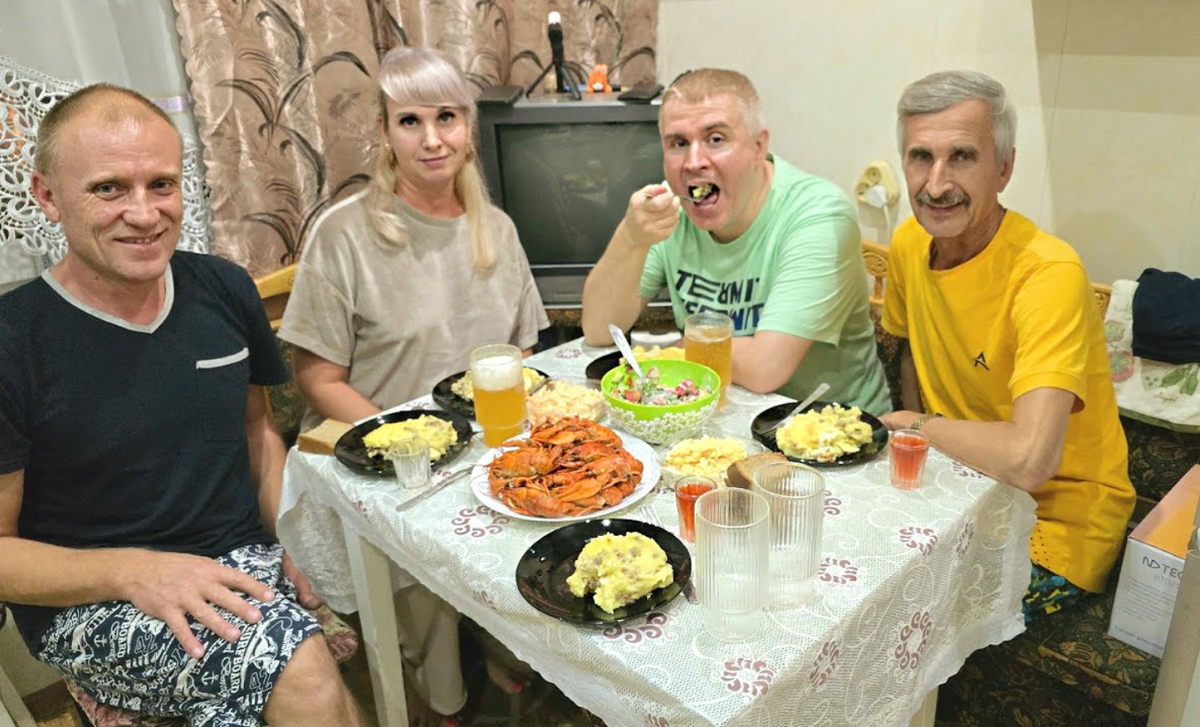 На столе стоял огромный таз с вареными раками. Вокруг него - батарея пластиковых бутылок с дешевым пивом, нарезанный ломтями черный хлеб прямо на клеенке и банка майонеза с ложкой внутри. Ни тарелок, ни вилок, ни салфеток. Раки были навалены горой, с них стекала вода прямо на стол.