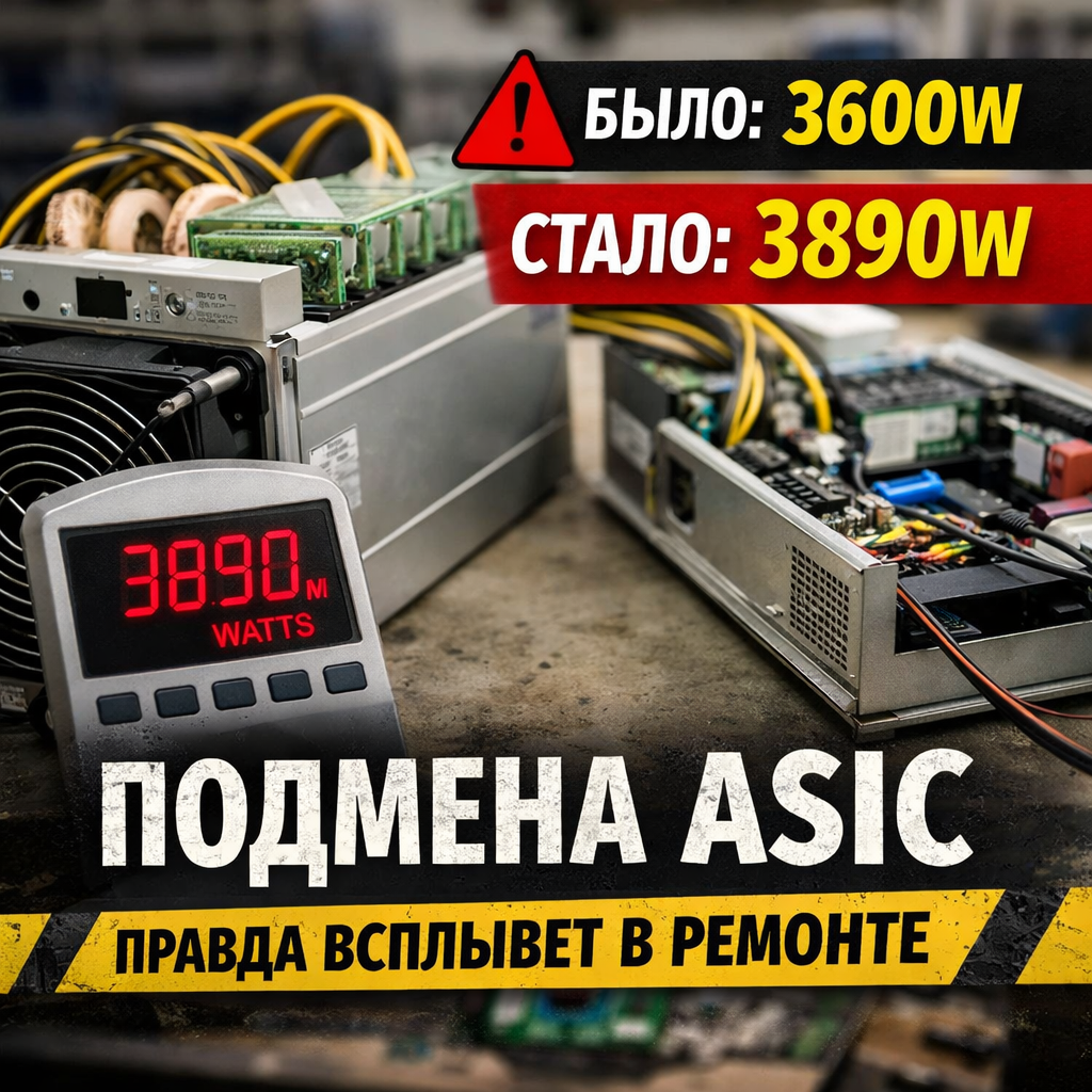 Это прямой признак того, что ASIC модифицирован. Да, такие аппараты работают. Но: Дополнительно: Причина банальна — деньги. Схема простая: Часто наклейка практически неотличима от заводской.