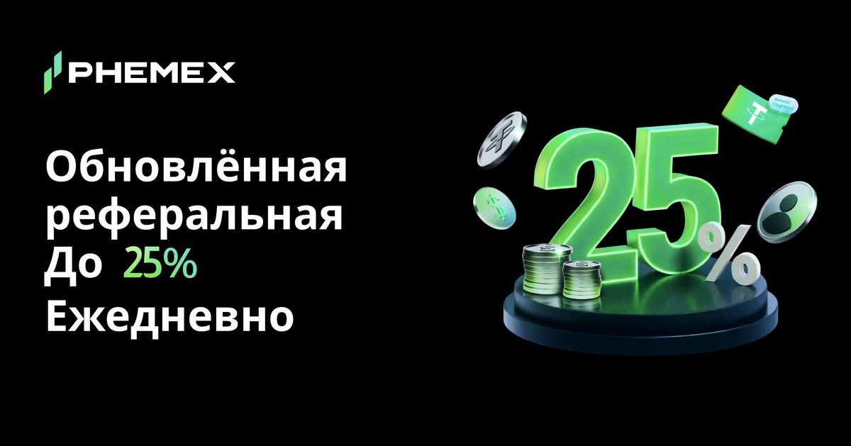 ! С 25 декабря 2025 года — новые условия заработка: 1. Пассивный доход — комиссии со сделок друзей: - Level 0: 15% (базовый); - Level 1: 20% (5 квалифицированных приглашений или $50,000 USDT оборота); - Level 2: 25% (15 приглашений или $100,000 USDT оборота). Квалифицированное приглашение: регистрация + депозит ≥ 100 USDT + торги ≥ 1,000 USDT за месяц. Выплаты: ежедневно в 08:00 МСК Д+1 на спот. 2. Активный доход — бонусы за ивенты: - денежные премии, тестовые средства, купоны; - награды для вас и ваших друзей. Как начать: 1. Пройдите KYC, активируйте комиссию в разделе «Реферальная программа». 2. Участвуйте в ивентах — делитесь ссылками с друзьями. 3. Отслеживайте доход в панели управления. 🌐 https://phemex.com/ru/announcements/Phemex-Updated-Referral-Program