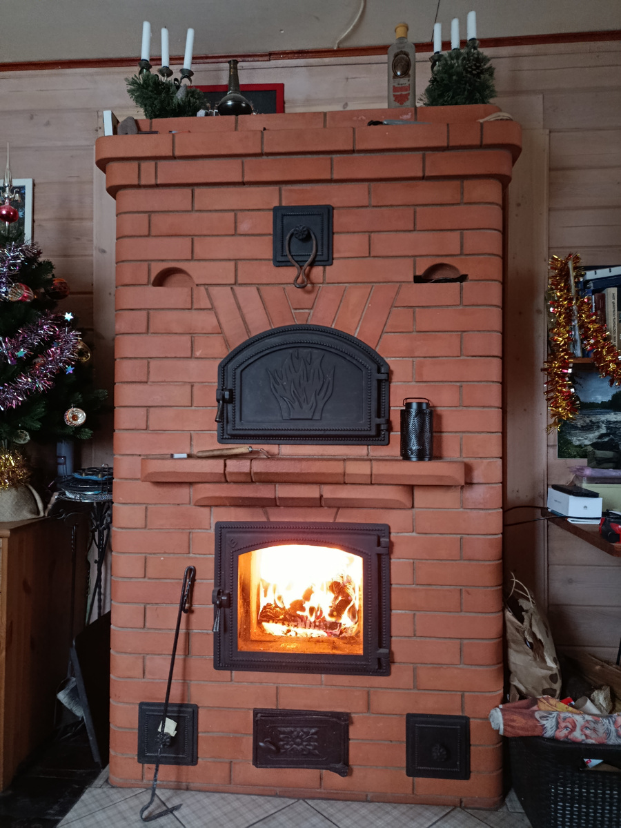 Топим ее крайне редко, только если много гостей съезжается (например на Новый Год) и на первом этаже спальных мест не хватает. Неоспоримый плюс металлических печек это скорость нагрева помещения - в нашем случае помещение площадью почти 40 кв.м нагревается с бодрящих +10 до +24 за полчаса. Но как быстро нагревается так и быстро остывает. И кирпичи на печке особо не спасают от остывания. Но наша печь не длительного горения, можно конечно прикрыть до минимума поддувало и заслонку, но это не сильно увеличит время горения.