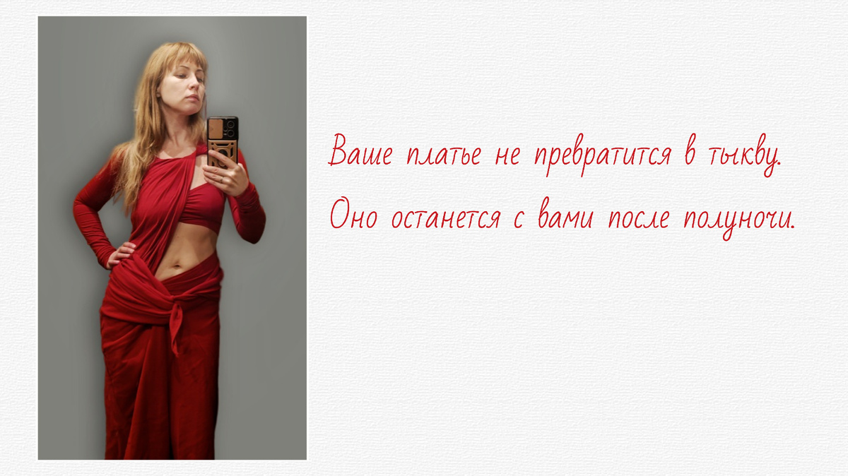 И помните: Ваше платье не превратится в тыкву. Оно останется с вами после полуночи.