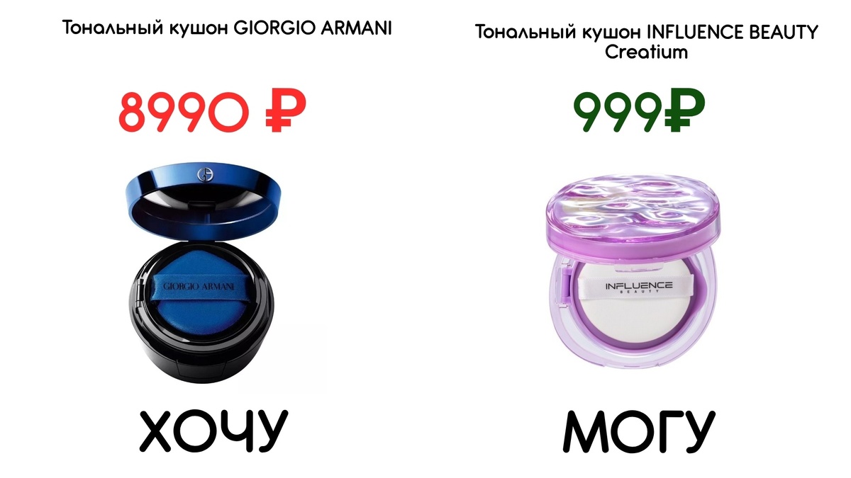 Я очень часто слышу: «Я не пользуюсь тональным кремом, я люблю кушоны». Хотя на самом деле кушон – это тоже тональный крем! Единственное, что отличается – УПАКОВКА. Но, хотя внешне она похожа на коробочку от пудры, состав там такой же, как у обычного тонального крема. 💙Кушоны могут быть разными по текстуре и по финишу, поэтому подбирать их нужно так же – под свою задачу и состояние кожи! 💙В комплекте идет латексная губка – это «встроенный спонж» для нанесения. Его можно намочить или наносить сухим способом. Но если вы привыкли наносить тональный крем кисточкой, то можете взять свою любимую кисть! 💙Я не советую наносить кушон пальчиками, потому что так вы обязательно занесете в средство микробы, и оно может начать портиться. Кушон желательно достаточно быстро использовать. Хочу: Тональный кушон GIORGIO ARMANI, цена – 8990 рублей. Могу: Тональный кушон INFLUENCE BEAUTY Creatium, цена – 999 рублей. 🎄Новогодняя распродажа! Эти курсы только раз в году, подробнее: https://jacques-course.