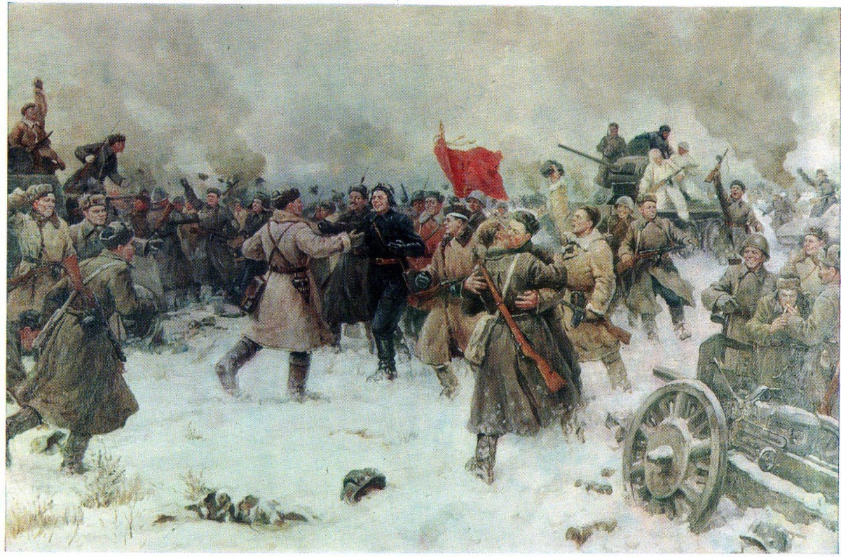 Стыковка наших группировок(фронтов), с большой долей вероятности произойдет в районе Орехова - как на картине советского художника Галькова Юрия Константиновича «Сталинград. Соединение фронтов в районе Калача» (1957)