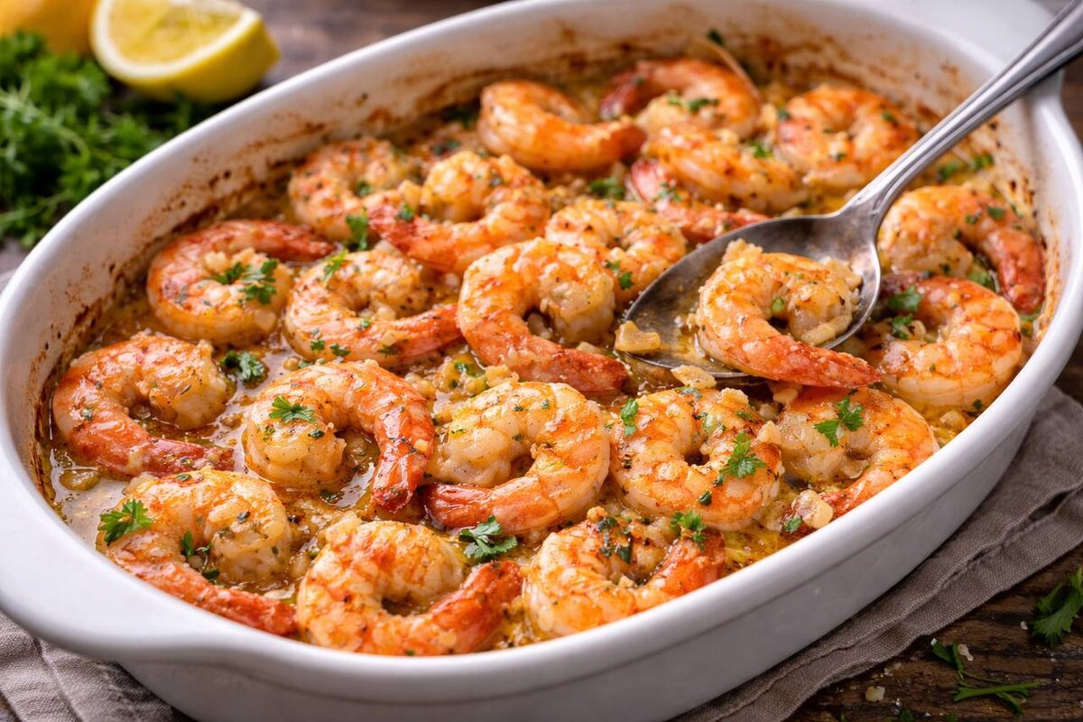 Иногда я понимаю, что стол уже почти готов, ещё до того, как он накрыт. Не по количеству блюд, а по запаху. Когда в доме появляется этот тёплый, чуть сладковатый аромат сливочного масла и чеснока, становится ясно: дальше можно не спешить. Гости уже будут «крутиться» рядом с кухней. Так у меня и прижились креветки в духовке. Не как рецепт «на каждый день», а как момент, который удобно встроить в праздник. Перед праздниками мы часто перегружаем стол холодными блюдами. Салаты, нарезки, закуски — всё вкусно, но через полчаса они начинают сливаться между собой. А горячего либо ещё нет, либо оно «где-то потом». Креветки в духовке решают эту паузу: • не перебивают аппетит • не требуют сложной подачи • не выглядят тяжёлыми • не отвлекают хозяйку от стола Это не основное блюдо и не фоновая еда. Это точка внимания. Раньше креветки всегда готовились на сковороде. Быстро, привычно, но каждый раз с ощущением спешки: помешать, не пережарить, не дать чесноку потемнеть, не заляпать плиту. С духовкой в