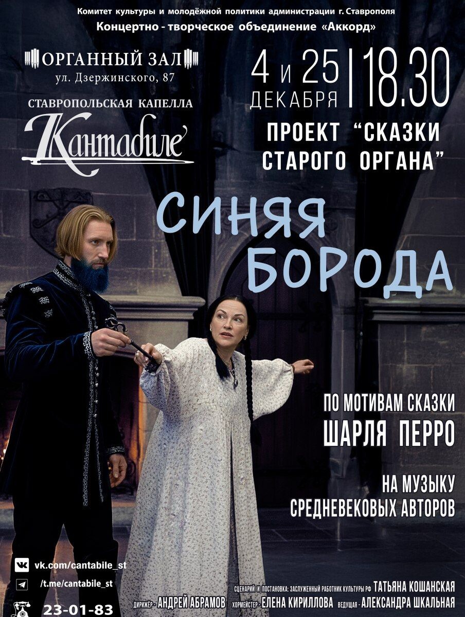 И, конечно, были сказки. Три премьеры. В Ставропольском академическом театре драмы имени М.Ю. Лермонтова это была русская сказка «Царевна-лягушка». В Ставропольском краевом театре кукол – добрая сказка для всей семьи «Как стать большим». А в Ставропольском органном зале капелла «Кантабиле» (Концертно-творческое объединение «Аккорд») в рамках большого проекта «Сказки старого органа» представила музыкальный спектакль «Синяя борода» по мотивам сказки Шарля Перро.