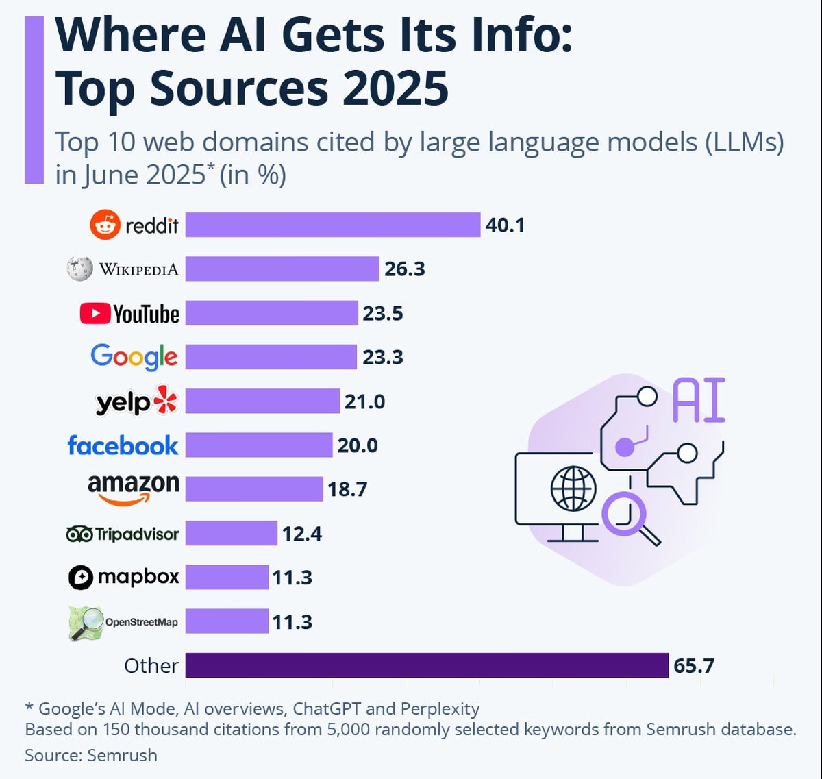 По частоте цитирования он обгоняет Wikipedia, YouTube и Google, что отражает простую вещь: ИИ всё чаще опирается не на отредактированные справочные знания, а на живые дискуссии, опыт пользователей, отзывы и споры. Фактически Reddit превращается в инфраструктурный слой для ИИ-экономики — место, где аккумулируется коллективный практический опыт. Это меняет баланс влияния в интернете: ценность получают не только крупные медиа и платформы, но и сообщества, которые раньше считались «шумом».